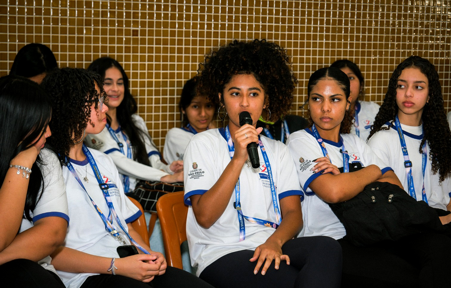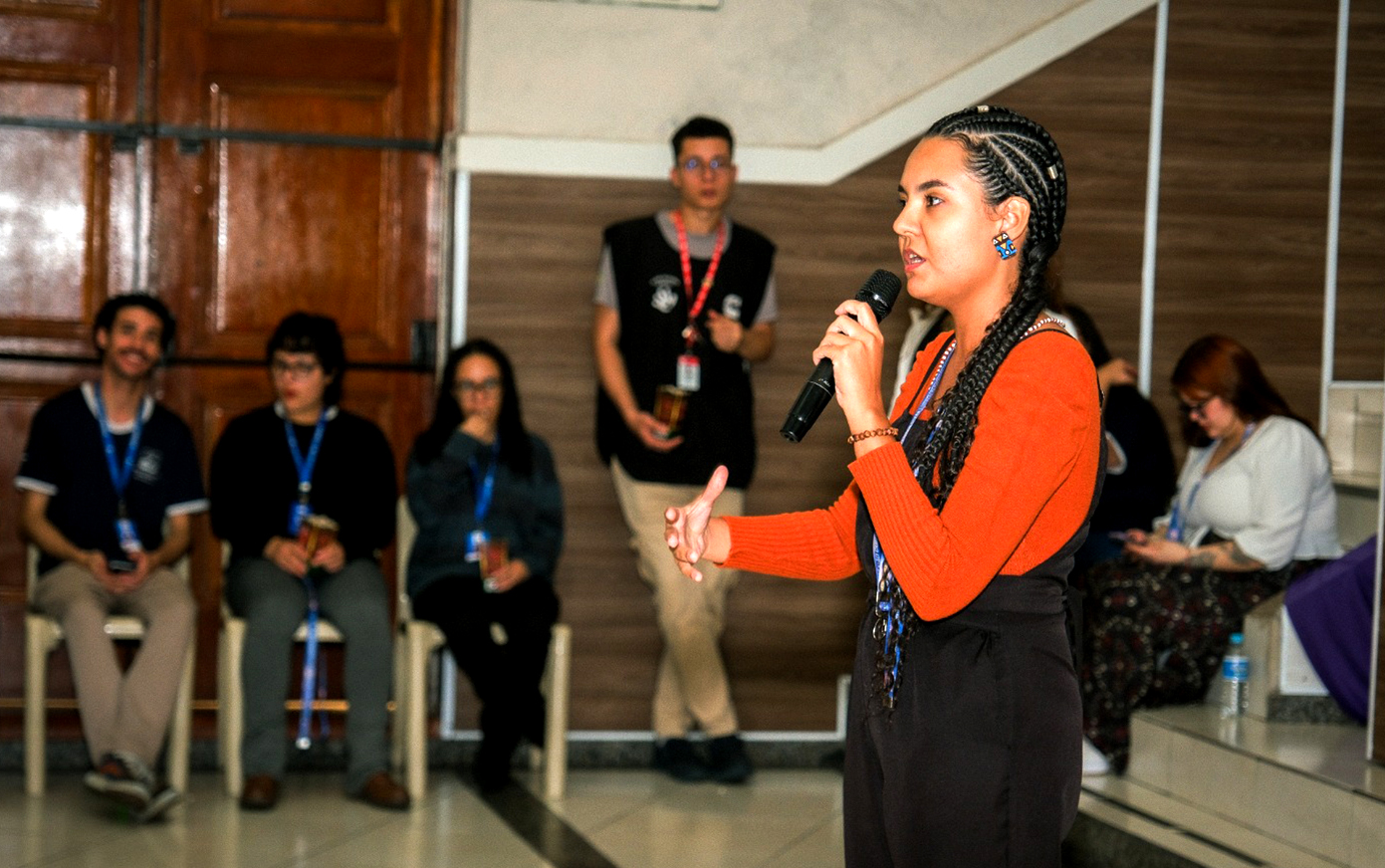 Em seguida, Ingrid Carvalho, Líder do projeto e Assistente de Responsabilidade Corporativa da Cummins, apresentou o projeto Cummins Powers Women e a iniciativa “Não curto, não compartilho”, desenvolvida em parceria com o Instituto AzMina. Após a exibição de um vídeo sobre assédio sexual e moral nas redes sociais, Ingrid Fernandes e Débora Vasconcellos, do Instituto AzMina, conduziram uma roda de conversa com os educandos. O momento possibilitou trocas de ideias, relatos, informações sobre direitos e reflexões relevantes sobre o tema.