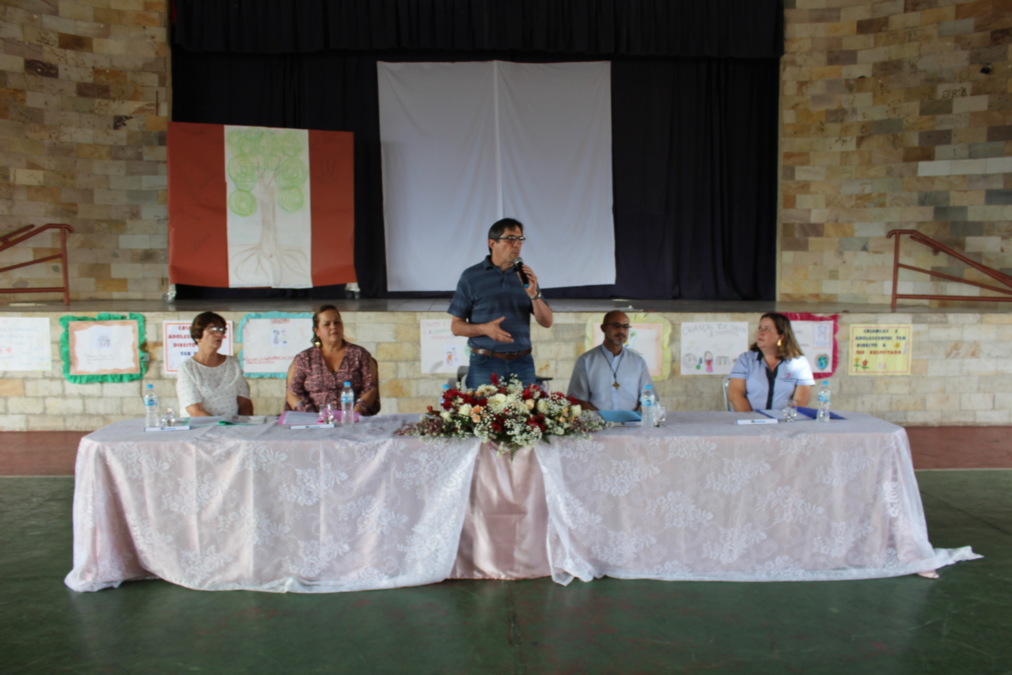 A mesa da Conferência foi composta pelo Diretor da Presença Salesiana de Lorena, o Padre Luís Fabiano, o Prefeito Fábio Marcondes, a Vice Prefeita Marieta Bartelega, a Secretária de Assistência e Desenvolvimento Social Zeila Pozzatti e a Presidente do CMDCA supracitada.