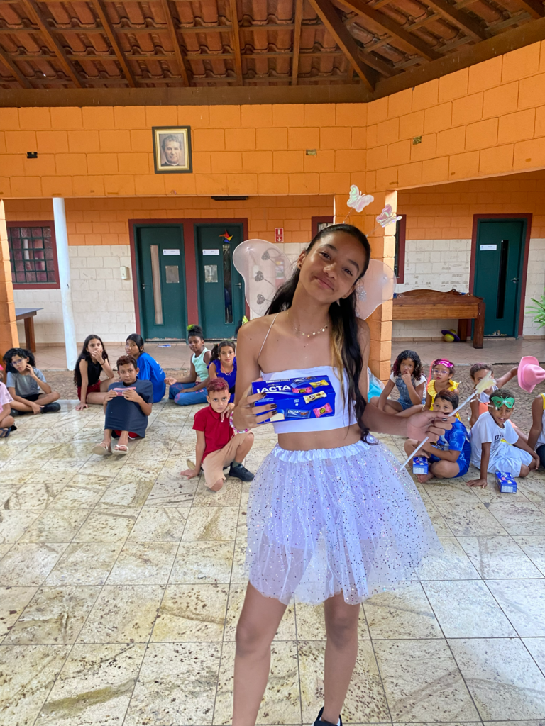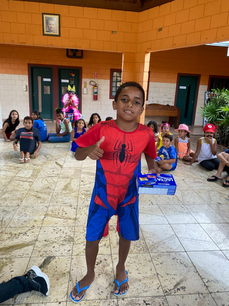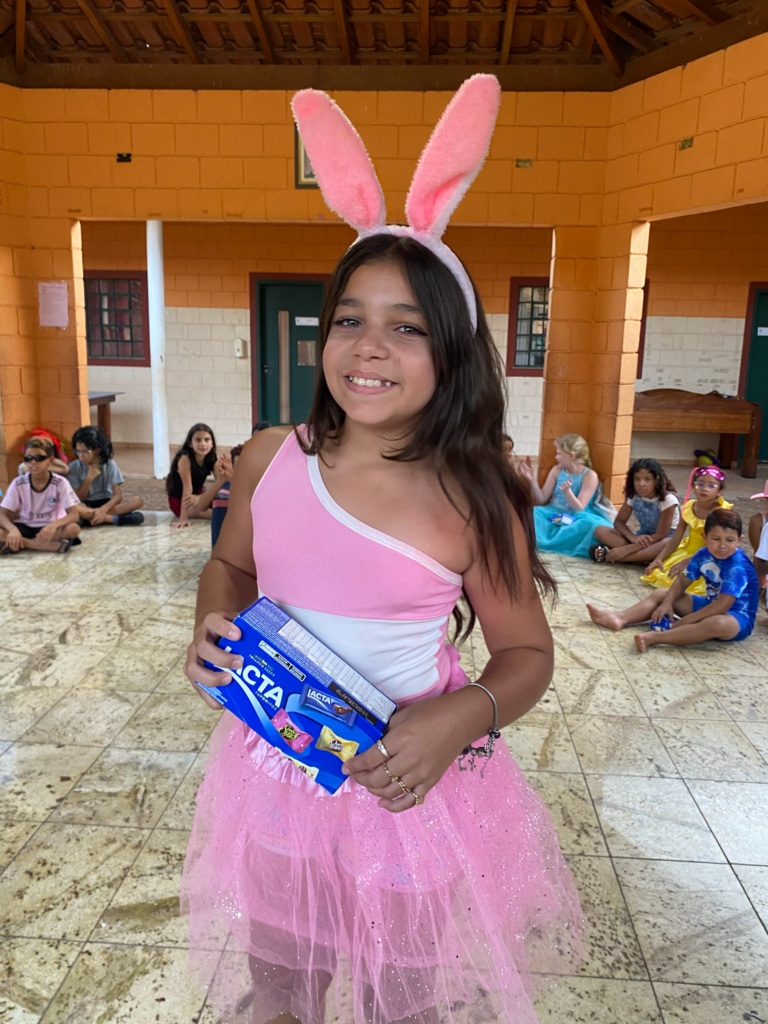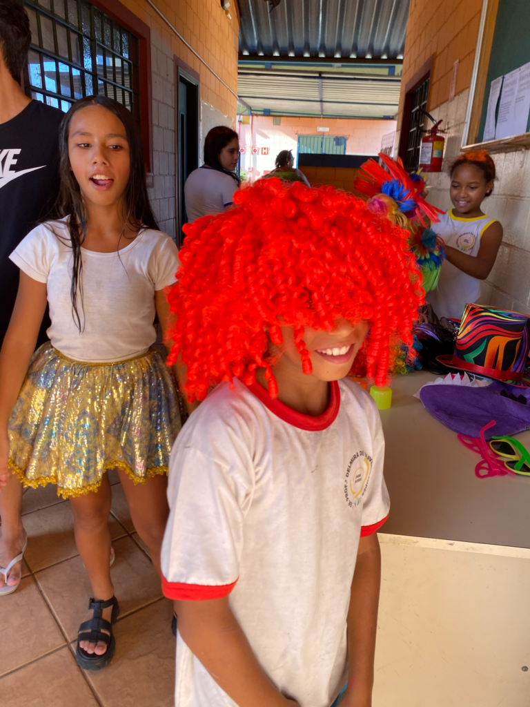 Durante a festa, tivemos comidas diferenciadas, muita animação, fantasias criativas e até pintura de cabelo com spray, que deixou tudo ainda mais divertido. Realizamos também um desfile com premiações para as fantasias mais criativas, incentivando a participação, a autoestima e a expressão individual.