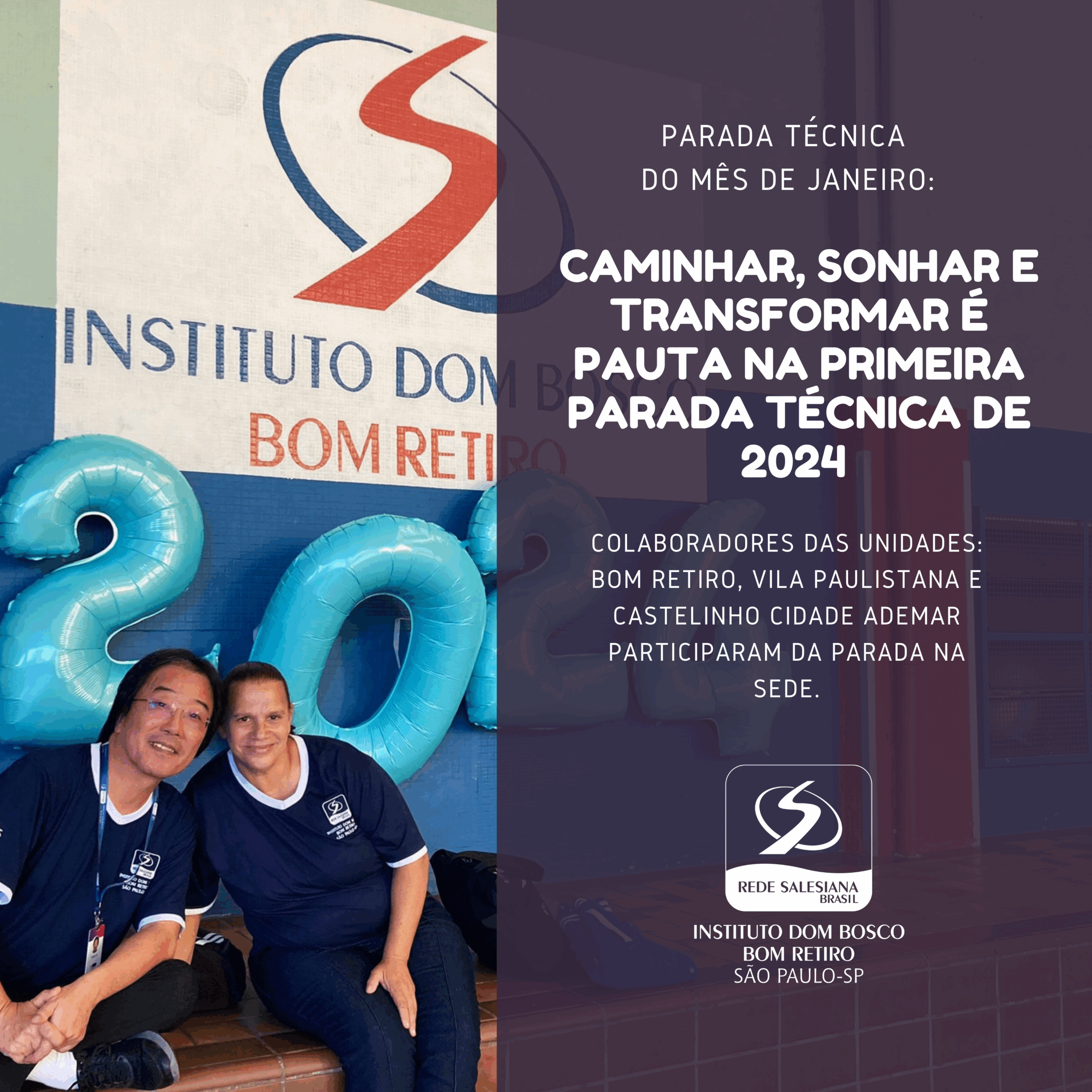 No dia 29 de janeiro, os Educadores do Instituto Dom Bosco reuniram-se na Sede do Bom Retiro para realização da primeira Parada Técnica do mês. Neste momento, os Colaboradores das Unidades Vila Paulistana e Cidade Ademar, estiveram na Sede para o encontro. O tema: “O sonho que faz sonhar – um coração que transforma ‘lobos’ em ‘cordeiros’’, tema da Estreia 2024 para toda a Família Salesiana do mundo, celebra o segundo centenário do sonho dos 9 anos de São João Bosco – ocorrido em 1824, anunciado durante o encerramento da Sessão Plenária Estiva do Conselho Geral. O tema foi escolhido pelo Reitor-Mor Salesiano, Padre Ángel Fernández Artime para conduzir e inspirar o trabalho de todos. Durante a parada, após a abertura do Pe Emerson Medeiros, Diretor Presidente, foi apresentada a nova Comunidade Salesiana: Padre Tércio Rodrigo, Irmão Zézo, Coordenadores de Pastoral e Padre Camilo Profiro da Silva, que ficará na Paróquia.