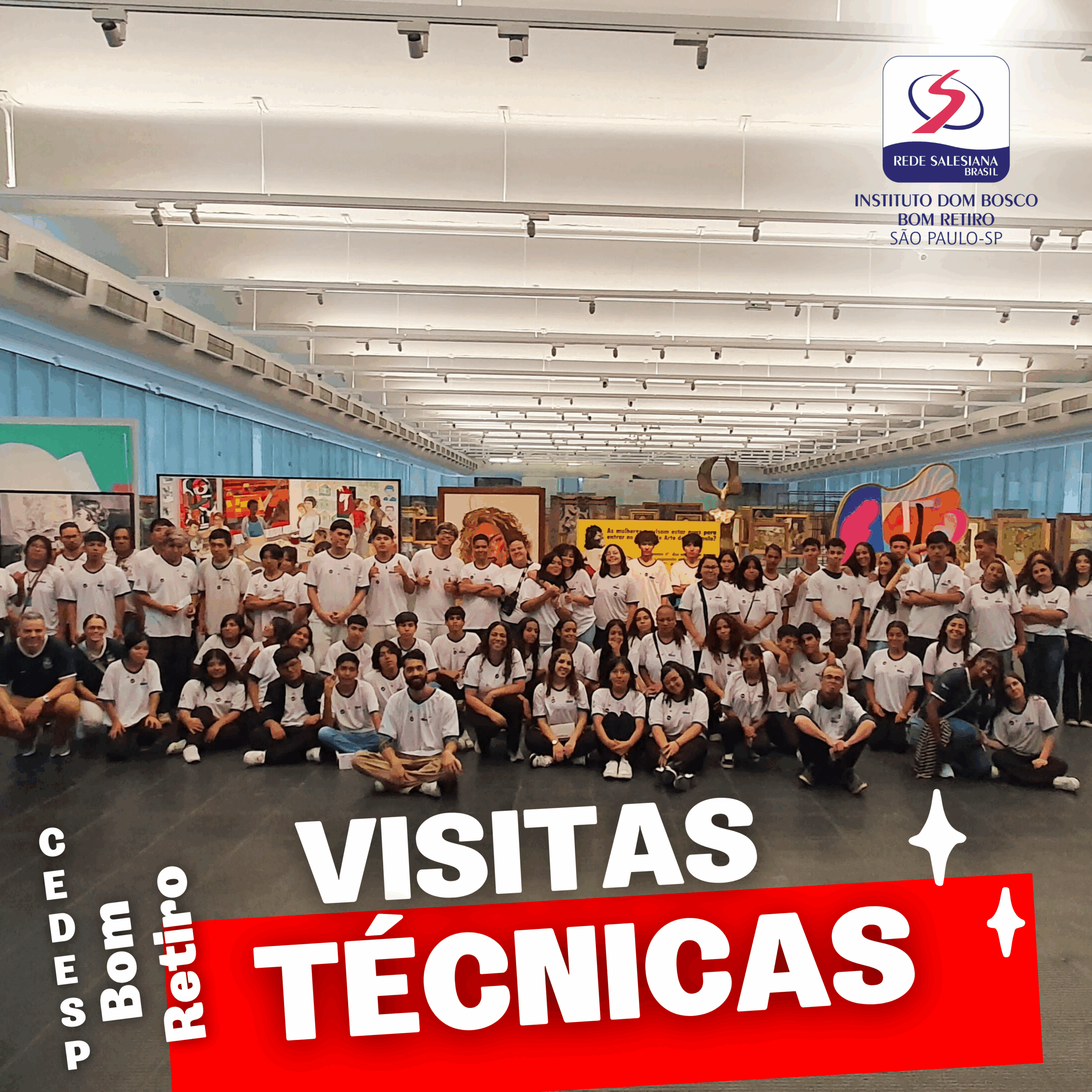 Uma visita técnica enriquecida de muita cultura, mostrada em três andares de exibição de obras (antigas, modernas e contemporâneas) de grandes artistas como: Portinari, Di Cavalcanti, Anita Malfatti, Waltercio Caldas e Sofia Borges. Vimos educandos que já tinham vivido a experiência de conhecer outros museus e se interessar ainda mais pela diversidade de obras e artistas. Observamos também educandos que nunca entraram num museu se encantar com a riqueza de informações transmitidas através da arte, seja por pintura, escultura, fotografia ou por objetos. Ter a oportunidade de oferecer aos educandos conhecimentos que vão além da sala de aula é gratificante.”, Educadores dos cursos.