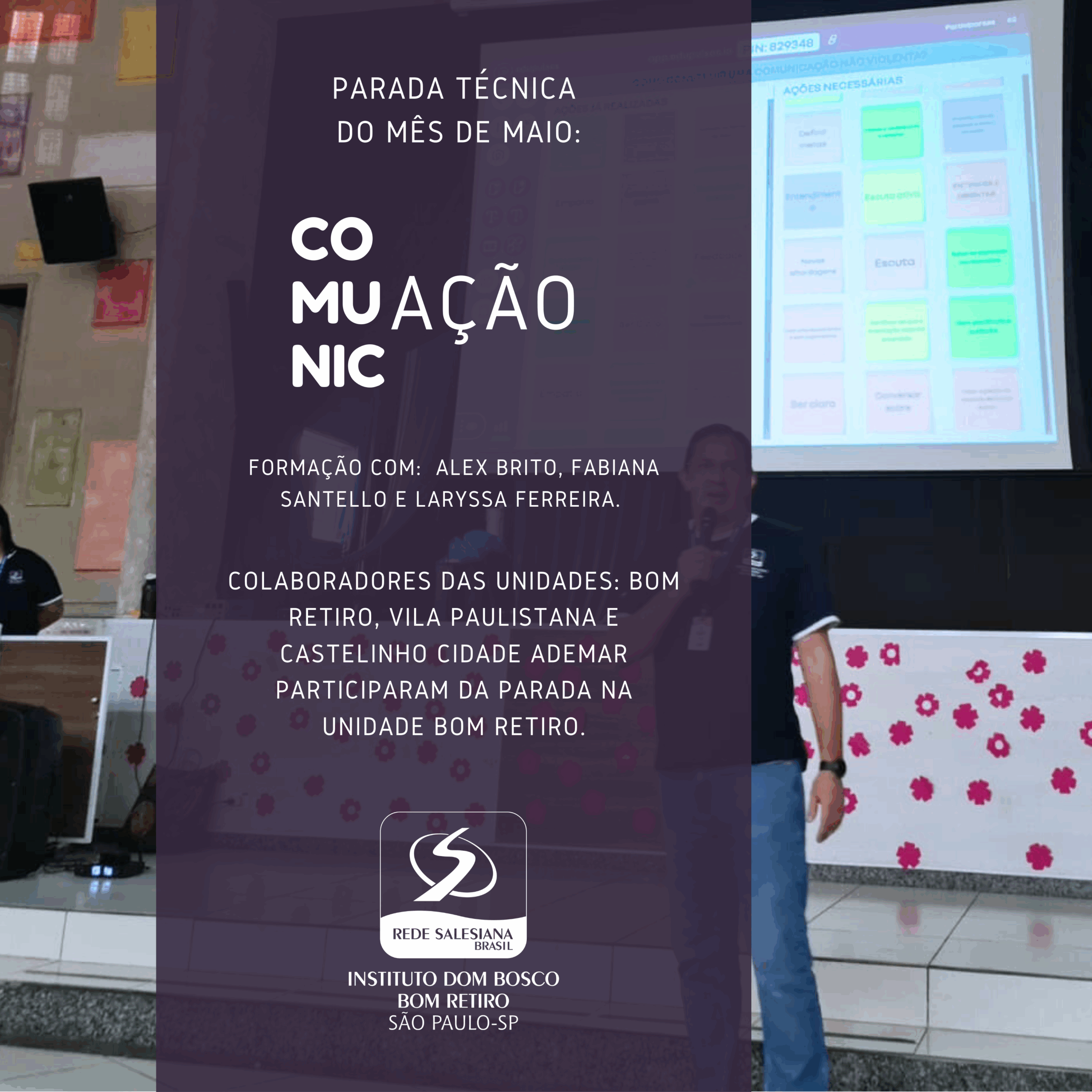 No dia 24 de maio foi realizada a Parada Técnica mensal do Instituto Dom Bosco. Neste momento as Unidades Vila Paulistana e Cidade Ademar estiveram presentes na Sede com a turma do Bom Retiro. Logo no início, foi realizado um momento de reflexão com a Pastoral, o mês das mães, também celebra a devoção à Virgem Maria e, em especial, neste dia, o dia de Nossa Senhora Auxiliadora. São João Bosco, fundador da congregação Salesiana, escolheu Maria Auxiliadora como protetora e guia de sua obra educacional e evangelizadora. Na sequência, os Educadores realizaram a Queima das Cartinhas escritas para Nsa Sra e receberam sua resposta junto com um doce.