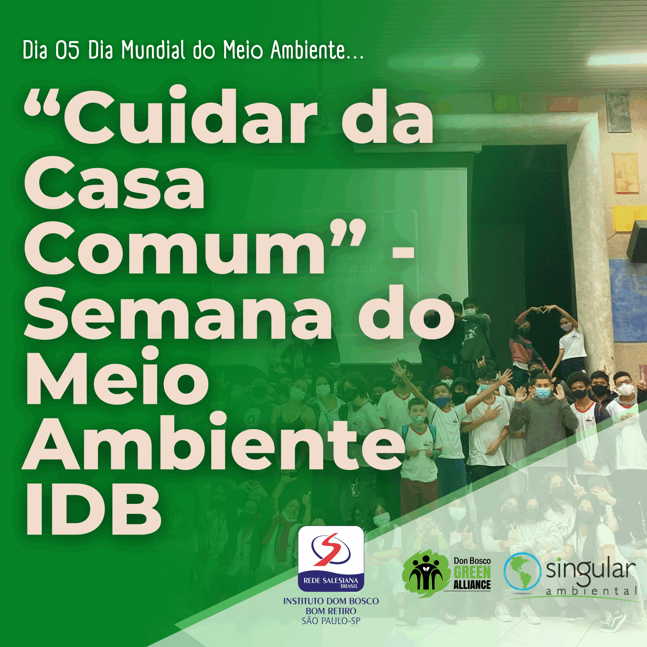 O Instituto Dom Bosco São Paulo, realizou a reflexão sobre sustentabilidade durante a Semana do Meio Ambiente, celebrando o Dia Mundial do Meio Ambiente (05 de junho). A conscientização iniciou no dia 31 de maio, até a data mundial. A iniciativa partiu da Equipe da Aliança Verde de Dom Bosco Don Bosco Green Alliance do Instituto, além disso, durante os momentos formativos a Instituição pode contar com a participação da Ambientalista Susi Uhren e a estudante de Jornalismo Clara Uhren, atuantes na Empresa Singular Sustentabilidade. Uma das integrantes do Aliança, participou ainda do Segundo Encontro Virtual para os Membros da América promovido pela DBGA, apresentando a campanha: Um faz Diferença” da Instituição.