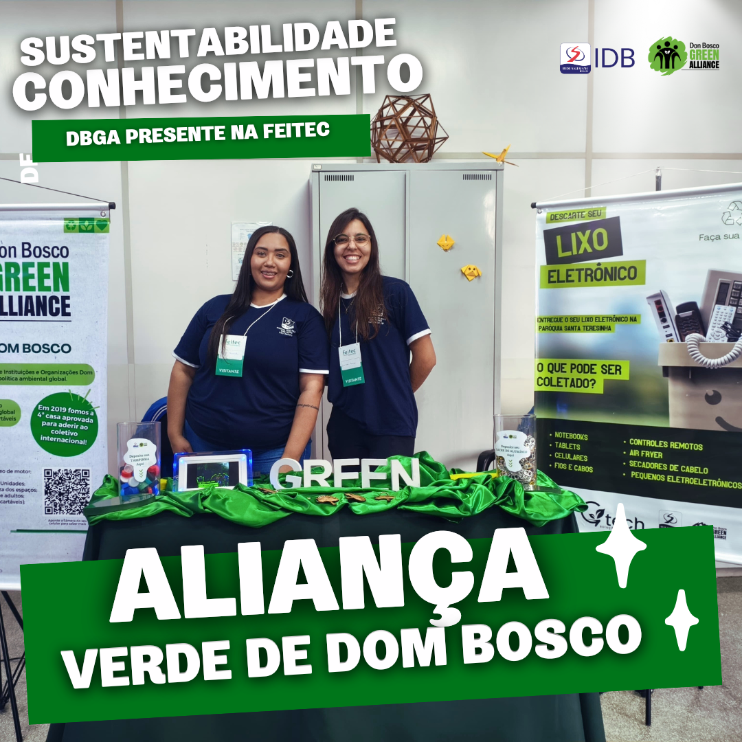Nos dias 18 e 19 de setembro, o Instituto Dom Bosco marcou presença na FEITEC 2025, realizada na Obra Social Dom Bosco Itaquera. A participação teve como foco apresentar as ações do projeto Aliança Verde de Dom Bosco, que reforça o compromisso da Instituição com práticas sustentáveis e o cuidado com o meio ambiente.