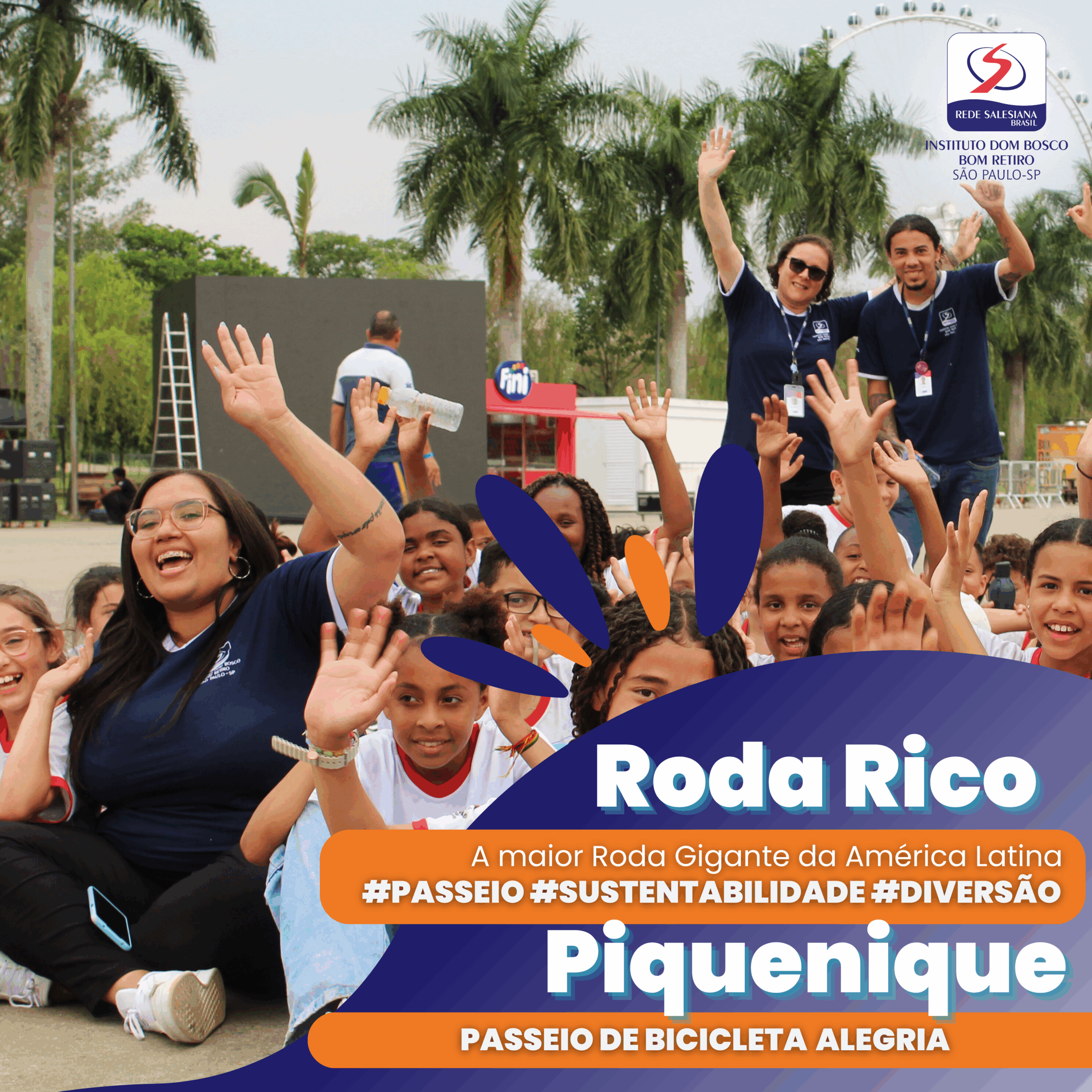 No dia 9 de outubro, o CCA Bom Retiro e CCA Castelinho Cidade Ademar do Instituto Dom Bosco, com 100 crianças com idades entre 9 e 13 anos, visitaram a Roda Rico, a maior roda gigante da América Latina, situada no parque Cândido Portinari, ao lado do parque Villa-Lobos. Com 91 metros de altura e 80 metros de diâmetro, a visita na roda foi uma projeto idealizado e implementado por Katia Guerreiro da Empresa Affinis Ideias de Negócios – Projeto de Educação Socioambiental Roda Rico. Katia, fez uma palestra no mês de outubro, explicando o processo de revitalização do Rio Pinheiro, além dos cuidados com os descartáveis e o meio ambiente na Sede do IDB. “Foi maravilhoso ter conhecido a instituição e os atendidos. Saber dos projetos socioambientais que já desenvolvem é a certeza de que estamos no caminho certo. Foi maravilhoso receber vocês e espero que tenha sido somente o começo de uma longa parceria cheia de bons propósitos.”, disse Katia