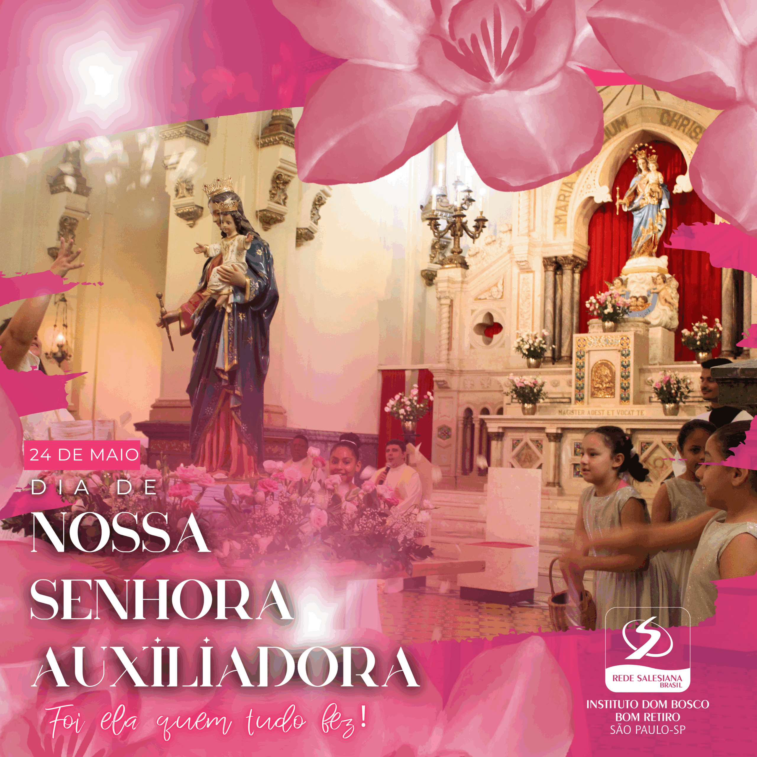 Já a Festa de Nossa Senhora Auxiliadora, celebrada no Castelinho Zona Sul no dia 22 e no Bom Retiro juntamente com a turma da VP no dia 23, proporcionou um momento celebrativo e especial. Em ambas as Unidades foi realizada a homenagem para Nossa Senhora Auxiliadora, com coroação e chuva de rosas, após uma breve missa. No Bom Retiro, com a presença da turma da Vila, Pe Emerson Medeiros, Diretor Presidente relembrou que a fala de Dom Bosco, foi: “Foi ela quem tudo fez! Foi pelas mãos de Maria que o menino simples, da ‘roça’, alcançou tantos jovens e chegou a tantos Países. No Castelinho, quem celebrou foi o Pe Tércio Silva. Em ambas Unidades foi comemorado os aniversariantes do mês e ao longo do dia, diversas brincadeiras, jogos na quadra, jogos de mesa, desenhos de Dom Bosco e Nsa Sra Aux para colorir, pintura de rosto, karaokê e muitas outras atividades. “Com a ajuda dos Voluntários, tudo foi mais fácil de ser realizado!”, Elizete Marinho, Assistente Administrativo Castelinho. As atividades propostas pelo evento proporcionaram a solidariedade intergeracional em entre todos os atendidos e os serviços da unidade Castelinho Dom Bosco. Possibilitando não apenas a interação entre diferentes gerações e o fortalecimento do respeito mútuo entre os indivíduos fora do contexto familiar, mas também ajuda na construção do senso de comunidade pertencimento.”, Crislaine Pereira, Técnica Assistente Social Zona Sul.