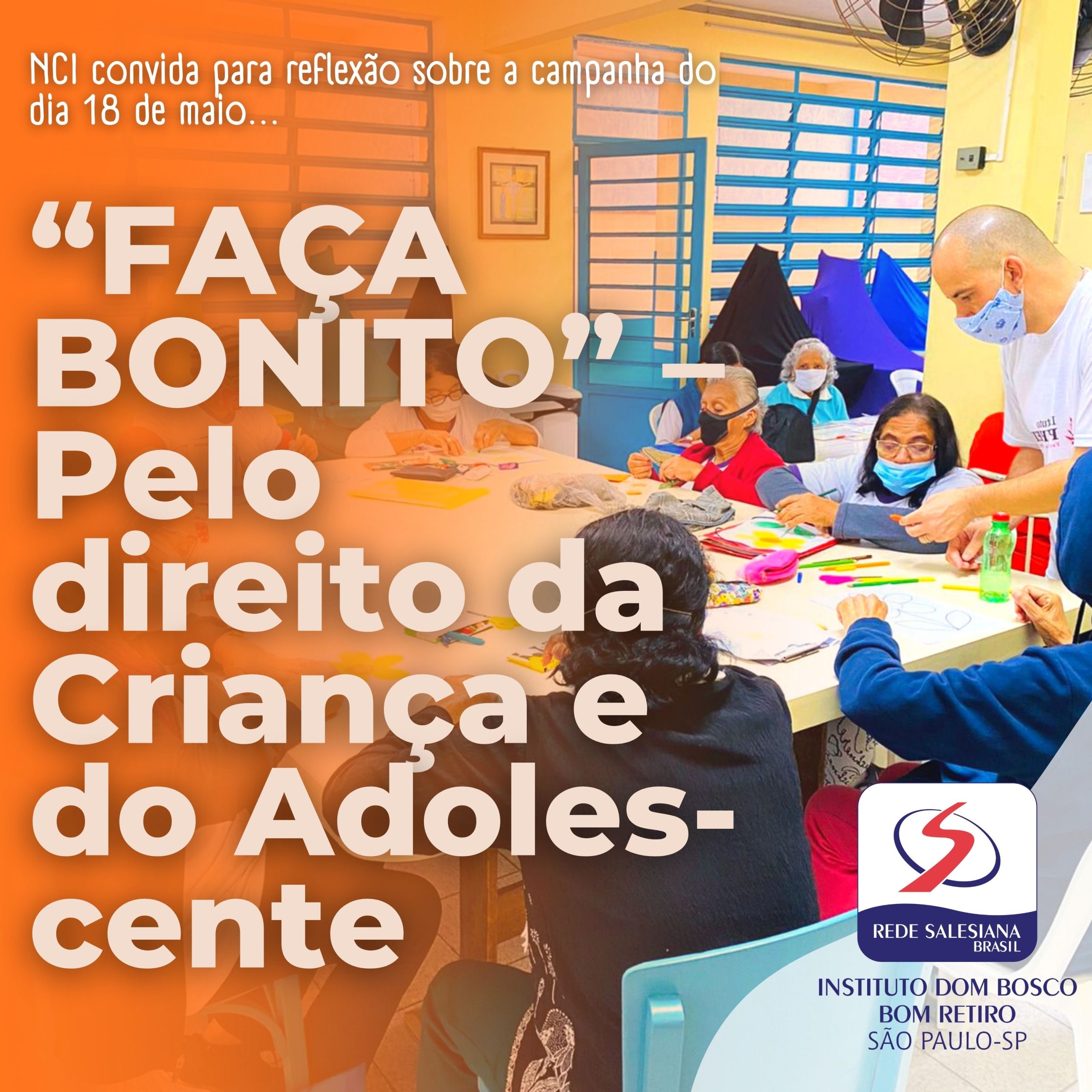 No dia 12 de maio, a turma do Núcleo de Convivência do Idoso NCI, durante a Oficina de Memória e Cognição do Instituto Dom Bosco São Paulo, Castelinho Dom Bosco Zona Sul, o Oficineiro Eduardo Campos, trouxe a reflexão para o dia 18 de maio – Dia Nacional de Combate ao Abuso e Exploração Sexual de Crianças e Adolescentes. Através de cartazes, plaquinhas, mensagens e até mesmo a confecção de flores amarelas (que é o símbolo do dia 18 de maio), as Atendidas refletiram sobre a data e deixaram o convite de “Faça Bonito” – Campanha na luta pelos direitos de crianças e adolescentes, para todos os presentes no Castelinho.