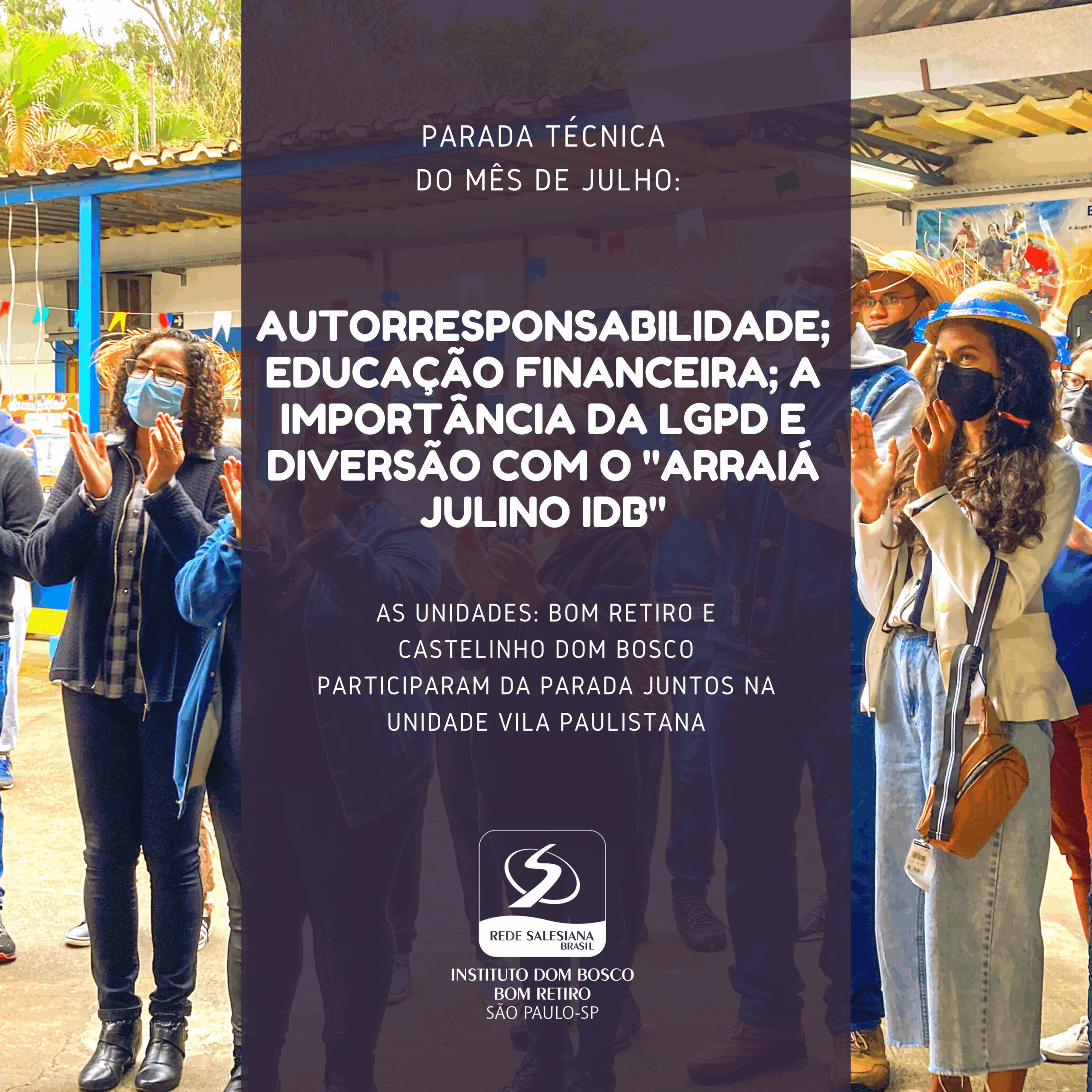 No dia 29 de julho, foi realizada a Parada Técnica mensal do Instituto Dom Bosco São Paulo SP, desta vez, a realização do momento formativo aconteceu na Unidade Vila Paulistana com a presença dos Educadores da própria Unidade, Bom Retiro e Castelinho Dom Bosco Zona Sul. A mudança é para que todos possam visitar a “casa” de cada um e conhecer a realidade do território. Neste dia: reflexão sobre autorresponsabilidade, formação sobre Educação Financeira, aprendizados sobre o Manual da Lei Geral de Proteção de Dados LGPD com o Padre Ronaldo Pereira, DPO da Inspetoria Salesiana e muita alegria com o “Arraiá Julino”.
