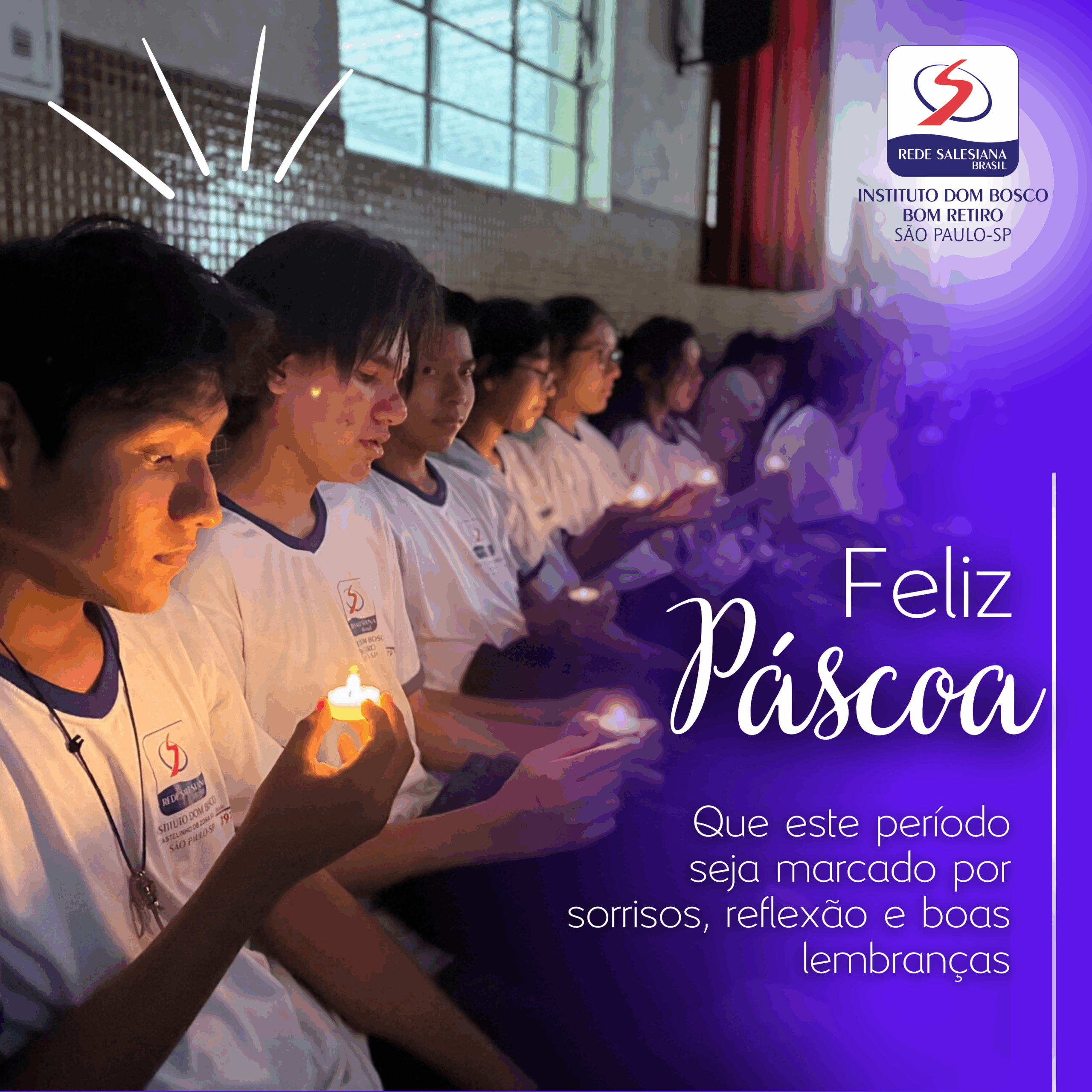 Na semana da Páscoa, 18 de abril, o Instituto Dom Bosco, Unidades: Bom Retiro, Vila Paulistana e Pinheiros, realizaram momentos celebrativos da Paixão de Cristo com crianças, jovens e adultos de 06 à 60 anos. Para as crianças: Ramos – chegada de Jesus a Jerusalém, Lava-pés e caça ovos, com premiação de barras de chocolates. Já os adultos, além do momento de ramos e lava-pés, também encenaram a sexta-feira Santa e a Ressurreição de Cristo. A turma também fez o caça ovos e foram contemplados com barras de chocolate. Na Unidade Pinheiros, o CEDESP e CCA, além da reflexão, também foram contemplados com ovos de páscoa arrecadados pela Paróquia São João Bosco.