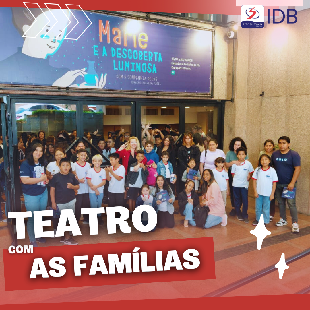 No dia 19 de novembro, o CCA PROVIM Bom Retiro do Instituto Dom Bosco, realizou um passeio especial ao SESC Consolação, reunindo as famílias atendidas para assistir à peça “Marie e a Descoberta Luminosa”. A atividade proporcionou um momento de convivência e contato com manifestações artísticas, fortalecendo vínculos e ampliando repertórios culturais.