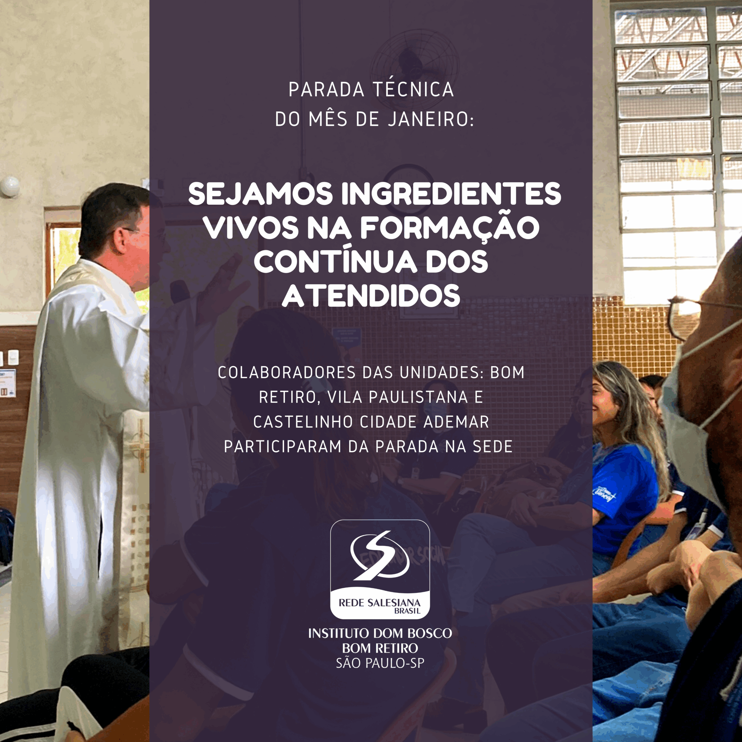 No dia 26 de janeiro de 2023 foi realizado o retorno dos Educadores do Instituto Dom Bosco de todas as Unidades (Bom Retiro, Vila Paulistana e Castelinho DB Cidade Ademar), após período de férias, na Sede da Instituição. Nesta retomada foi realizada também a primeira Parada Técnica do ano com a nova Direção da Comunidade Salesiana local, composta por: Pe Emerson Medeiros – Diretor Presidente; Pe Luiz Gonzaga Piccoli – Vice-Diretor e Pe Magno Fonzar – Coordenador de Pastoral. O momento de posse foi realizado com a presença do Pe Inspetor Ernesto Justo Piccinini. Durante as apresentações, Pe Magno, anunciou o tema da estreia de 2023; “COMO FERMENTO NA FAMÍLIA HUMANA HOJE. A dimensão laical da Família Dom Bosco”. A equipe de Pastoral realizou ainda uma dinâmica repleta de integração.