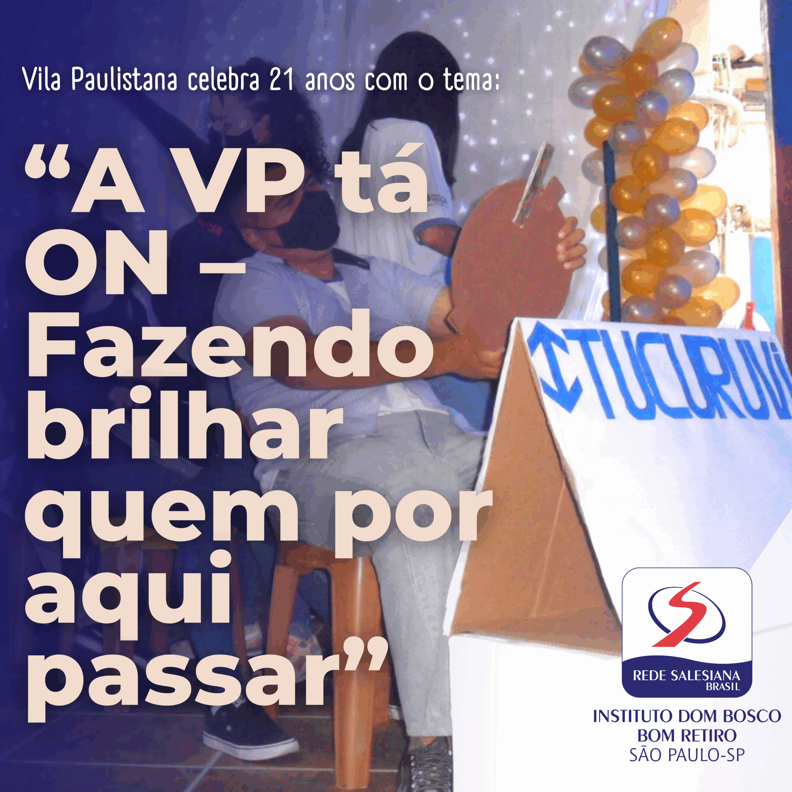 O 21º Aniversário da Unidade Vila Paulistana (14 de junho), foi celebrado no dia 20 do mês, a VP é uma extensão do Instituto Dom Bosco São Paulo. No dia de comemorar a aniversariante contou com a presença da Equipe de Educadores e Atendidos do Centro de Desenvolvimento Social e Produtivo CEDESP Dom Bosco VP, Equipe do Instituto Sede Bom Retiro, Equipe Castelinho DB Zona Sul, Ex-educandos da Unidade e Parceiros e apoiadores da Instituição. Com o tema: “A VP tá ON – fazendo brilhar quem por aqui passar”, a Vila trabalhou as seguintes temáticas: O brilho na vida do outro; As nossas transformações; A importância dos amigos; O respeito; Como que o CEDESP Dom Bosco Vila Paulistana me ajudou.