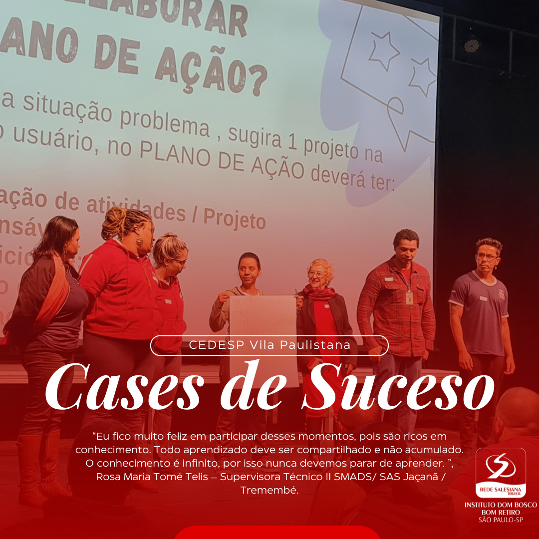 No dia 15 de julho o Instituto Dom Bosco – CEDESP Vila Paulistana, participou do Compartilhando Saberes 2024, na Fábrica de Cultura Jaçanã, junto de todos os Serviços socioassistenciais do território Jaçanã e Tremembé, reunindo aproximadamente 100 pessoas. O objetivo principal do evento é promover a integração das equipes da rede socioassistencial, estimulando e evidenciando o potencial criativo de todos os profissionais dos serviços que possuem parceria com a Prefeitura; além de proporcionar um espaço de valorização e reconhecimento da riqueza cultural.