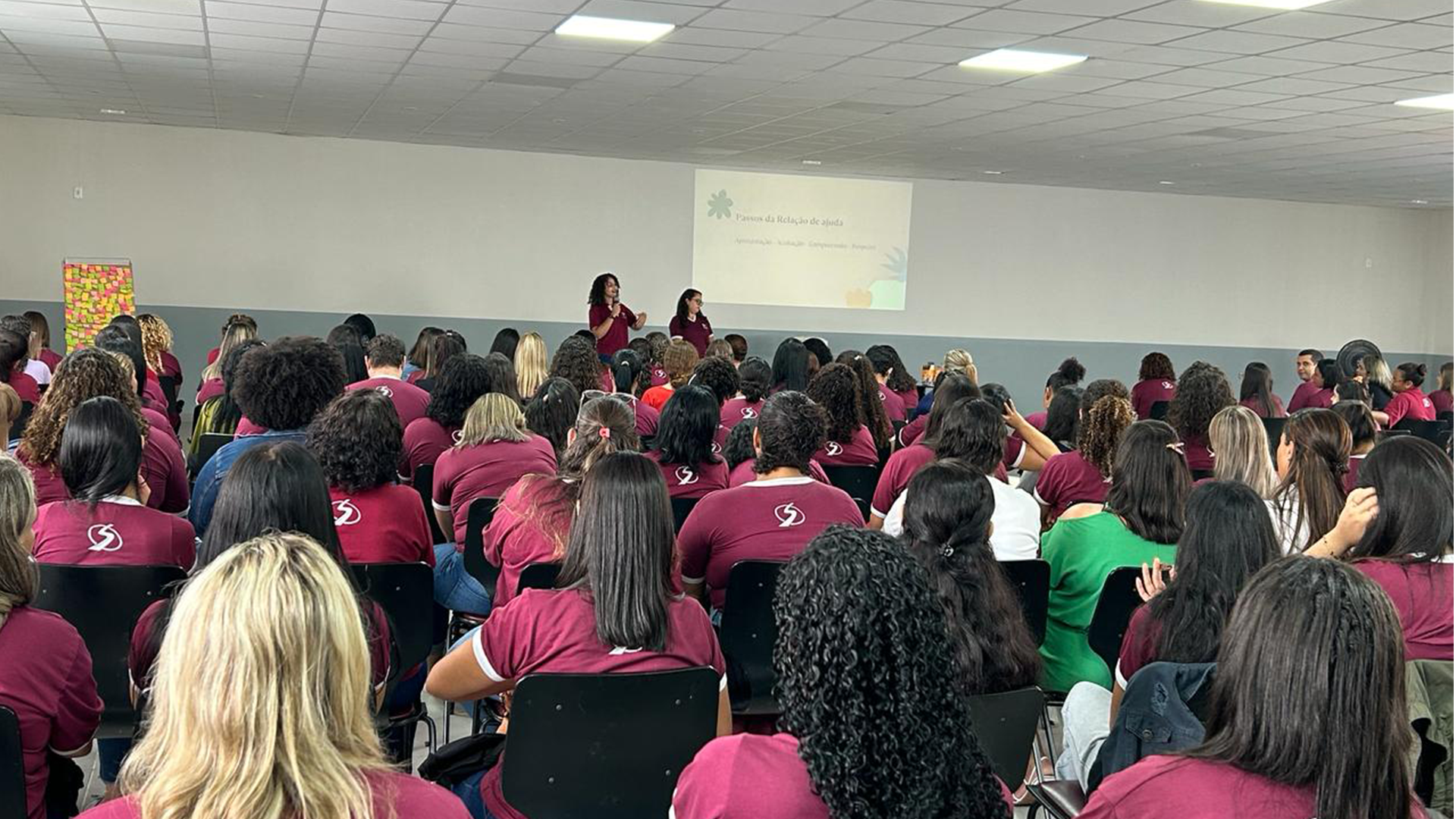 Colocando situações diárias em reflexão, as educadoras orientaram os mais de 200 colaboradores presentes com alguns passos que podem ser seguidos para que o acolhimento seja realizado de maneira integral.