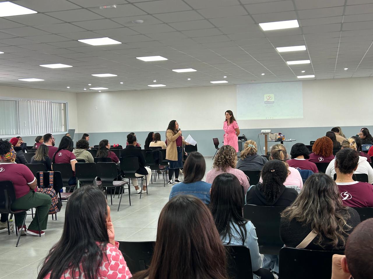 Psicóloga Evelin Martins aborda a temática com os colaboradores da Obra Social São João Bosco em formação mensal